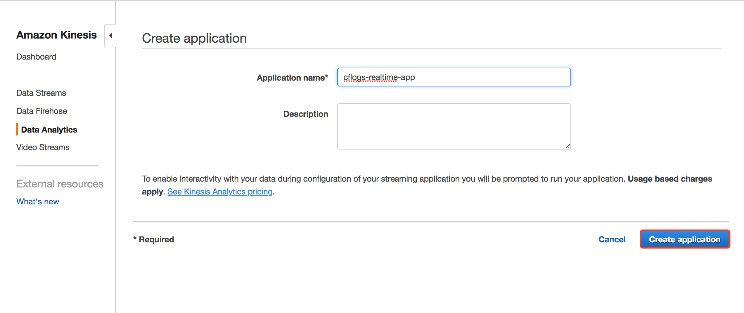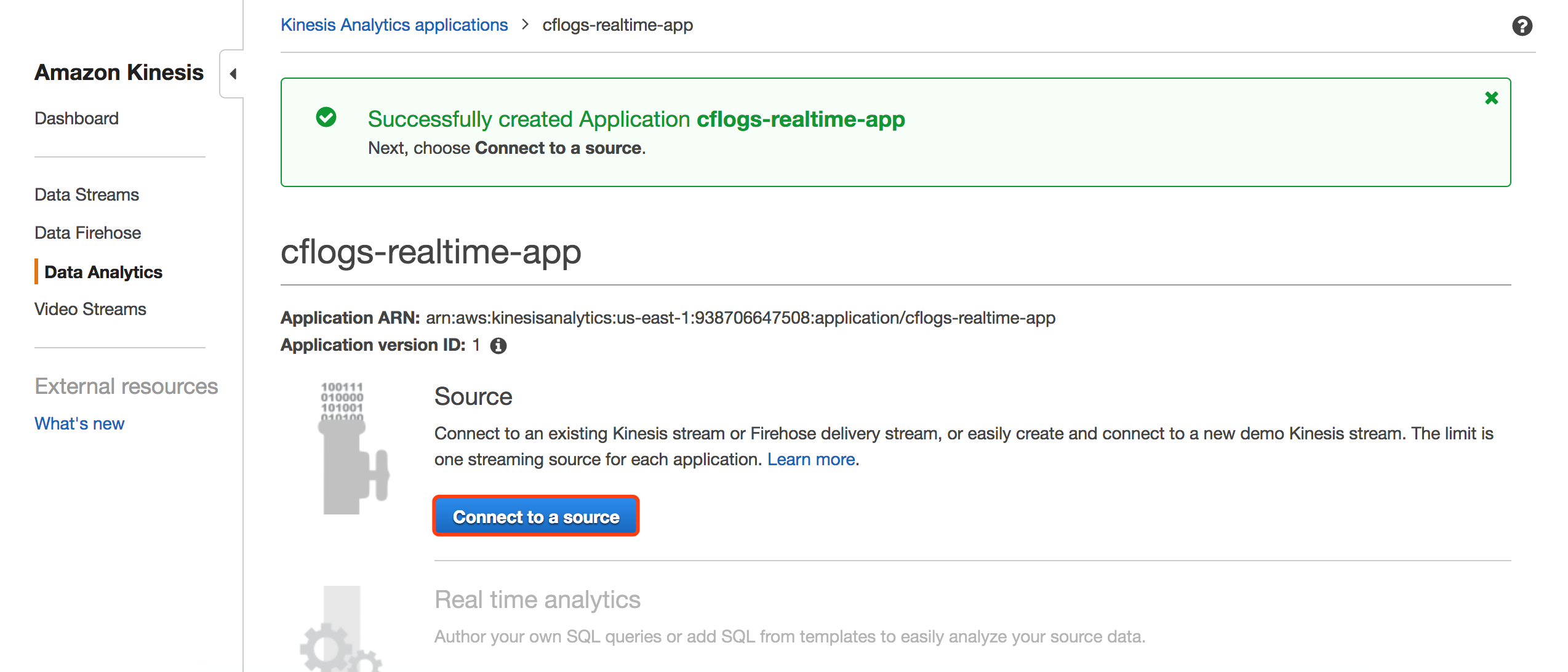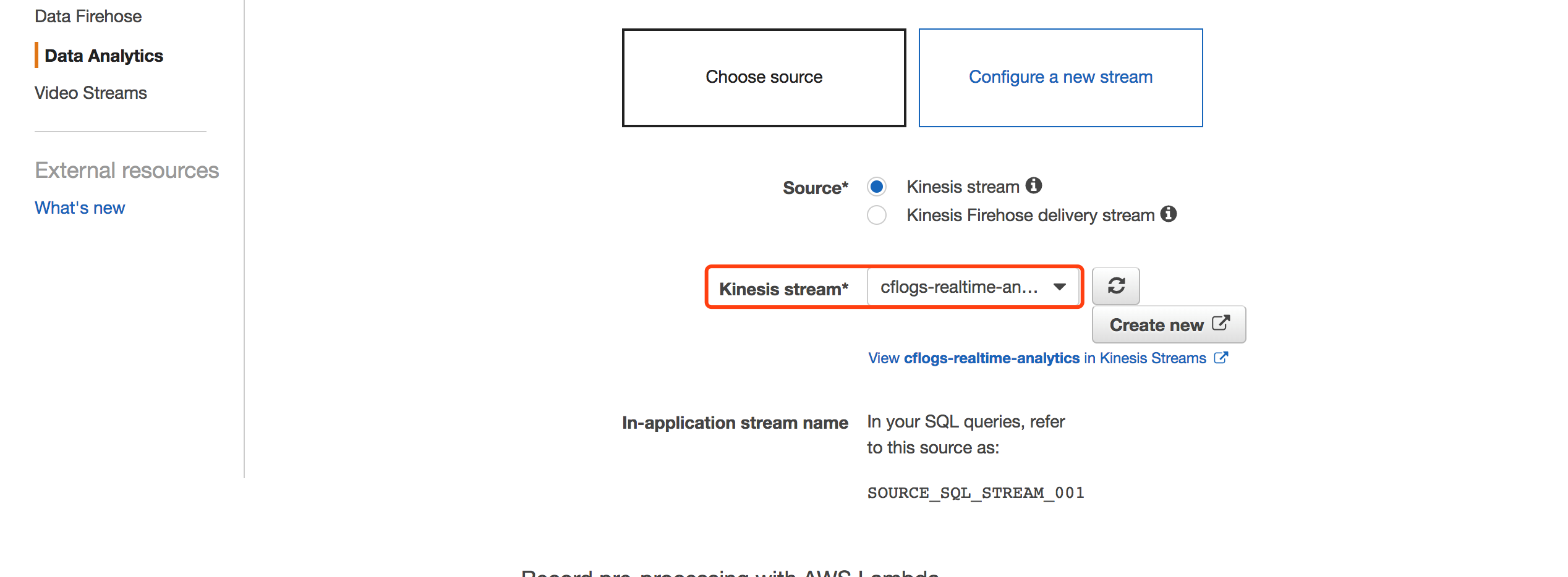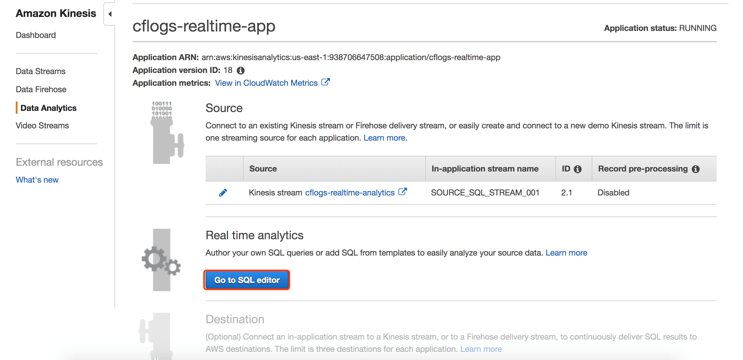 第三步 创建Kinesis Analytics,对Kinesis流中的数据做实时分析