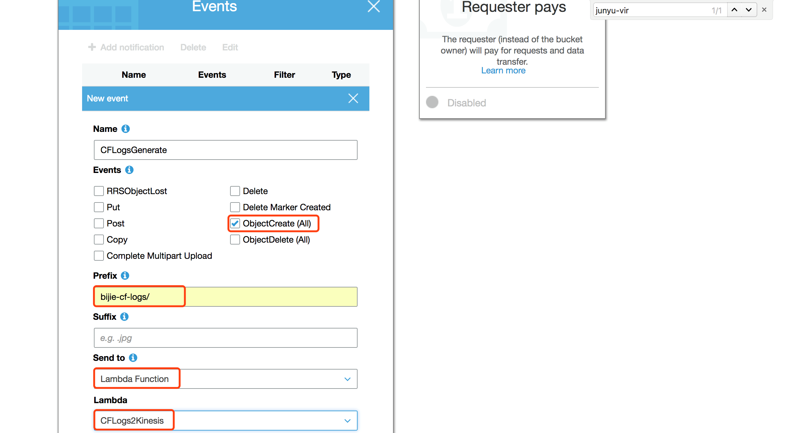 设置当有新日志文件产生的时候,触发之前创建Lambda函数。