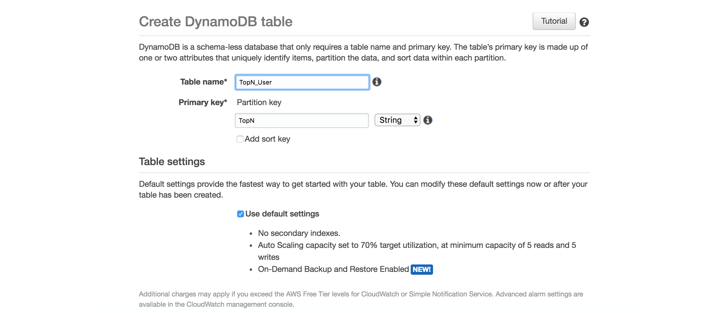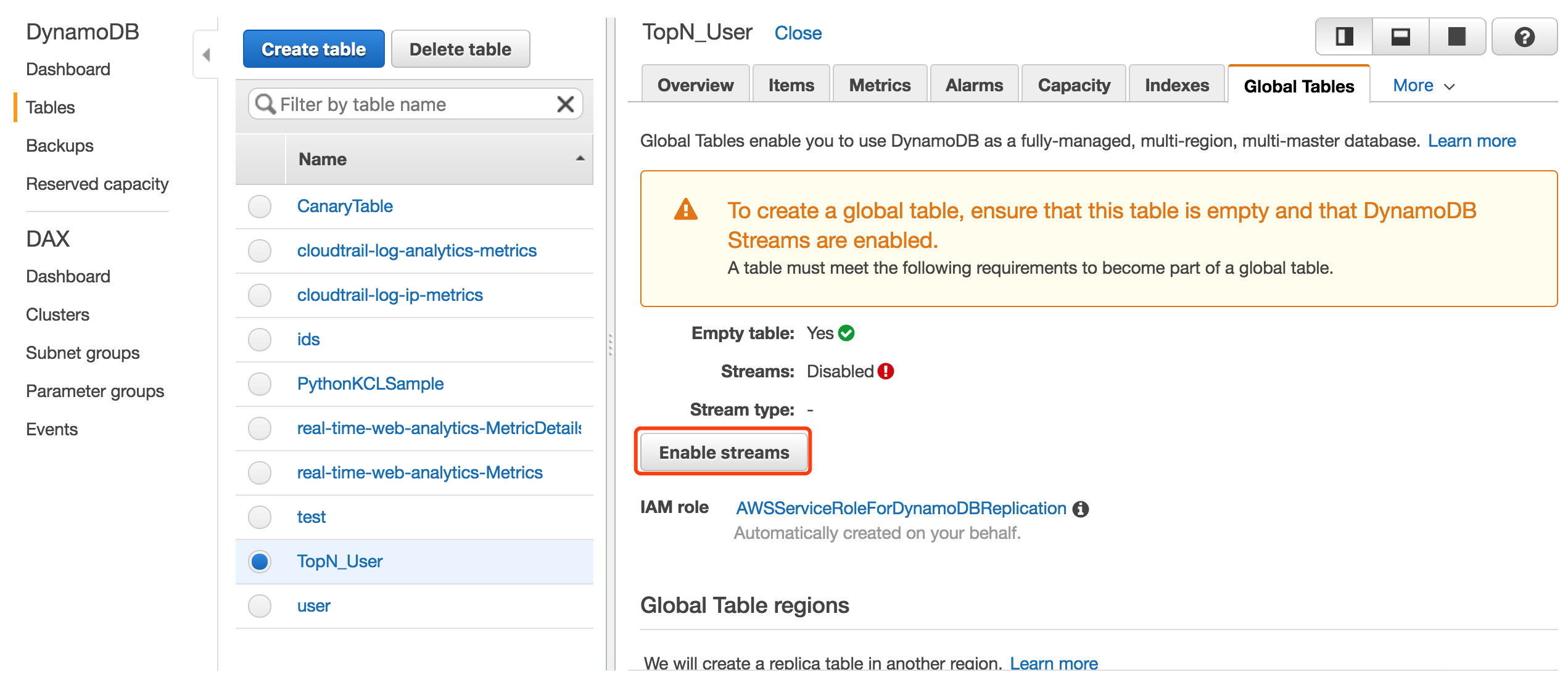 创建DynamoDB表,用于保存Kinesis Analytics分析的结果。