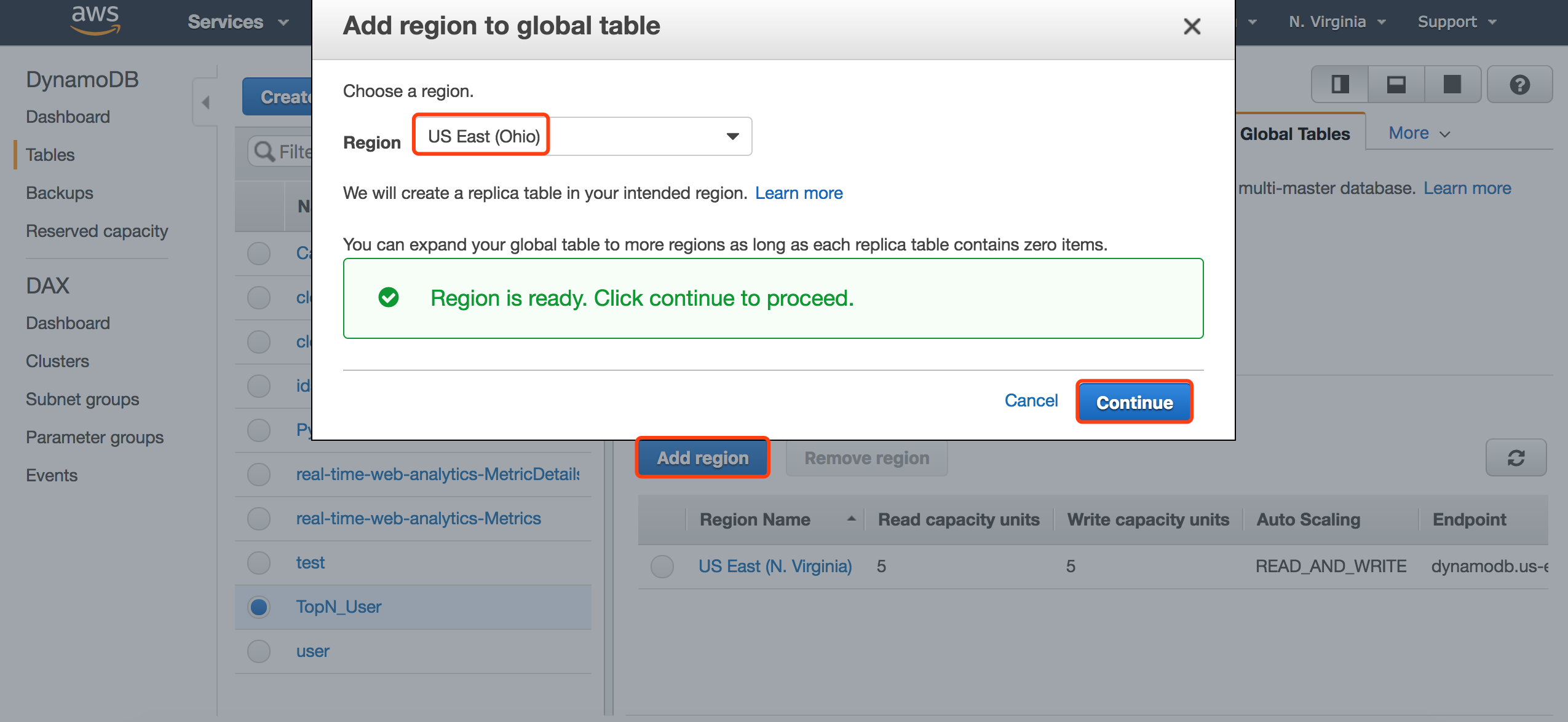 将创建的表设置成global table,与Ohio区域同步。