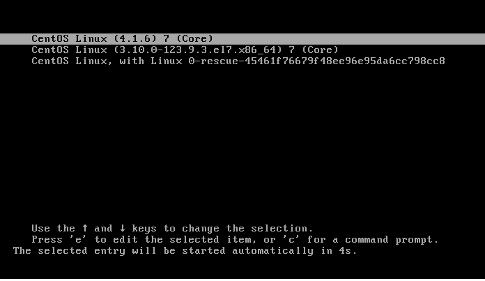 root@iZ28yx1yevuZ linux-4.1.6]# grub2-editenv list saved_entry=CentOS Linux (3.10.0-123.9.3.el7.x86_64) 7 (Core)