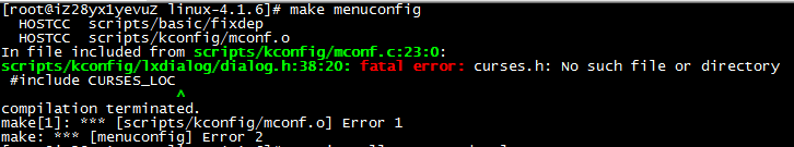 root@iZ28yx1yevuZ ~]# yum install ncurses-devel -y