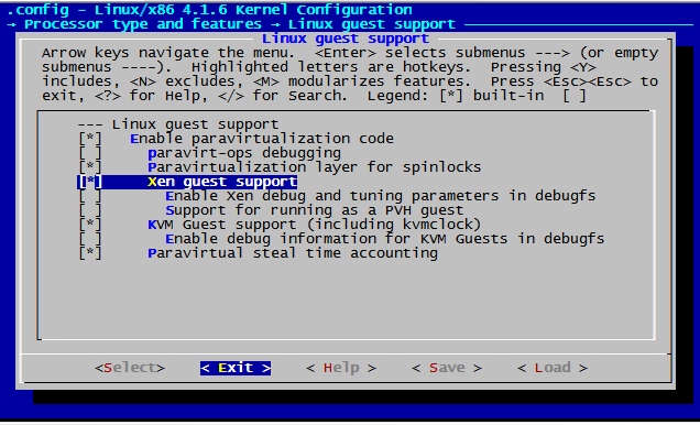 由于阿里云目前大部分机器还是xen环境的,所以阿里云环境下编译和普通系统相比,需要增加xen guest support,如下(menuconfig下如果找不到配置,可以个vi一样,通过”/”方式搜索):