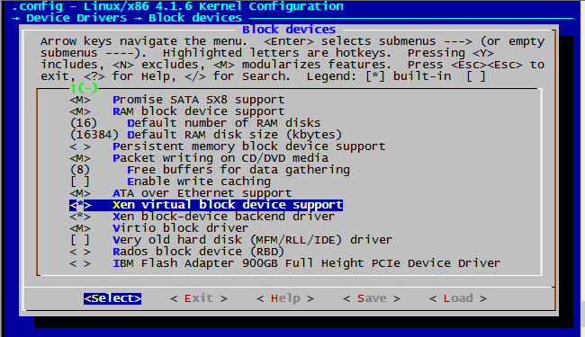 Device Drivers —> Block devices —> Xen virtual block device support