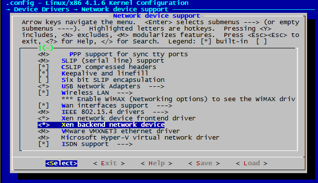 Device Drivers —> Network device support —> Xen network device frontend driver