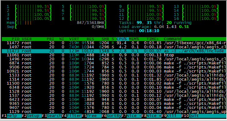(这个过程会非常的漫长,为了防止终端意外断开导致前功尽弃,这里建议在screen下执行操作。我测试服务器是16核,所以这里制定了16个job加速编译)