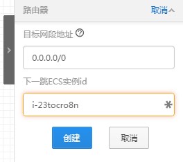 由于为了让内网服务器借助EIP访问公网,所以设置所有目标地址0.0.0.0/0下一跳都转发到绑定了公网IP的ECS实例上。这里的下一跳ECS不支持搜索,有点麻烦。