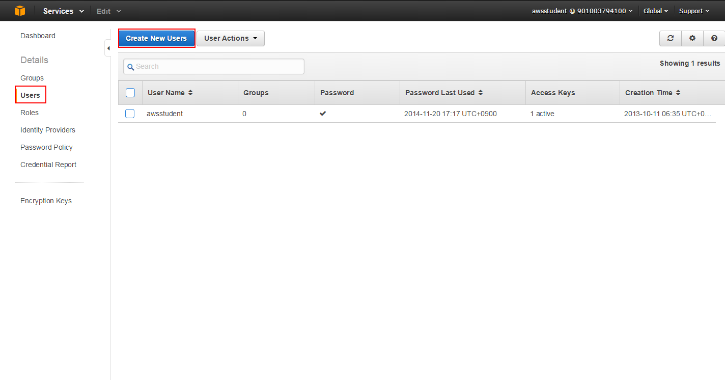 1.2点击「Users」,然后点击「Create New Users」创建用户。