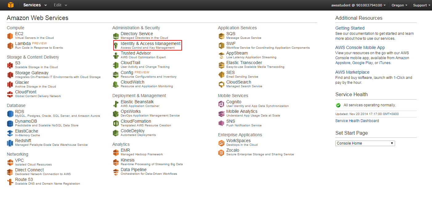 1.1登陆AWS管理控制台,点击「Identity and Access Management」。