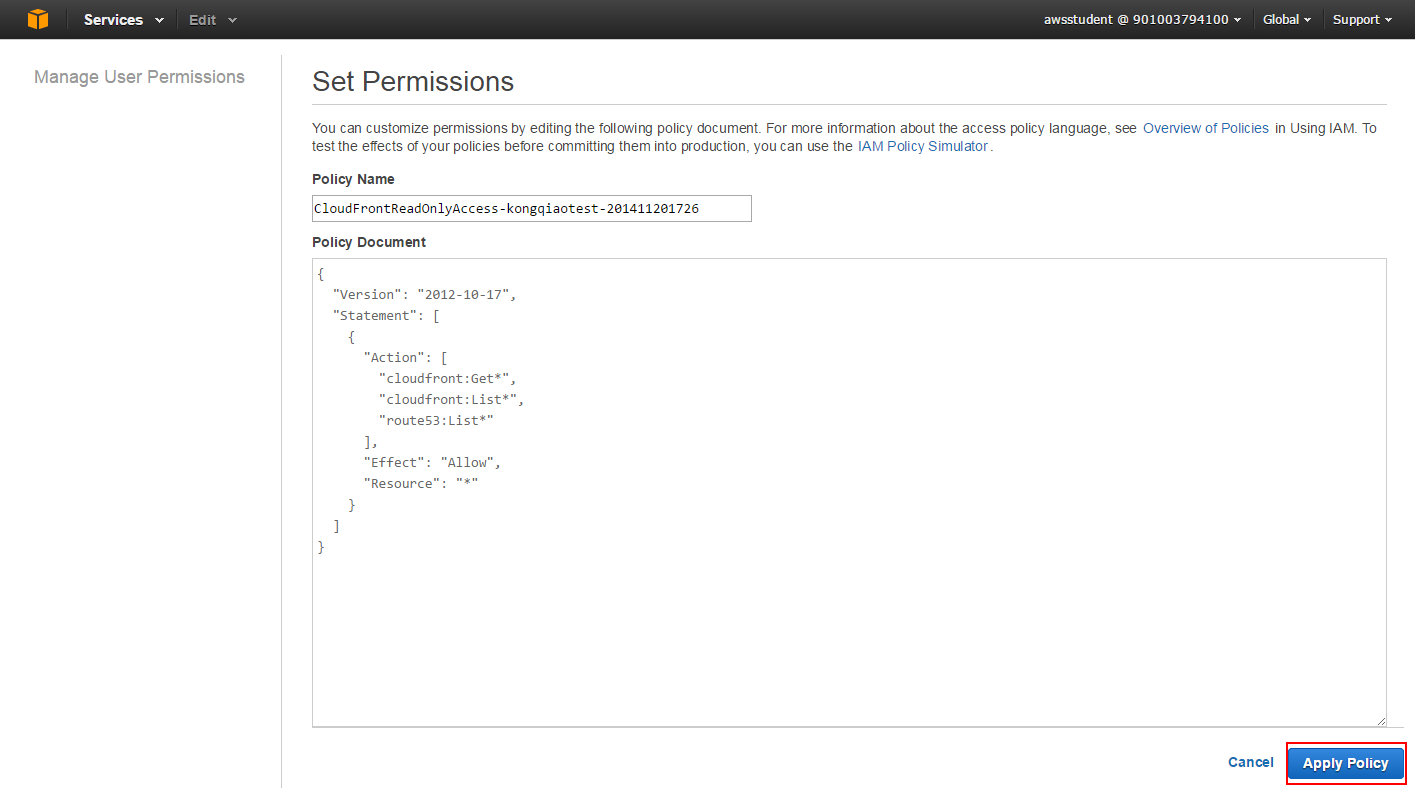 3.3如下显示了「policy」的内容,可以进行修改,这里直接点击「Apply Policy」。