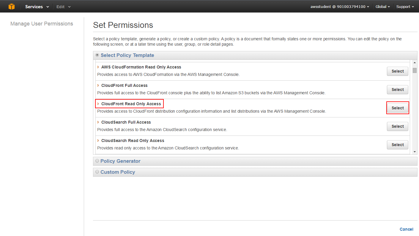 3.2选择权限,这里选择「Read Only Access」。点击「Select」。