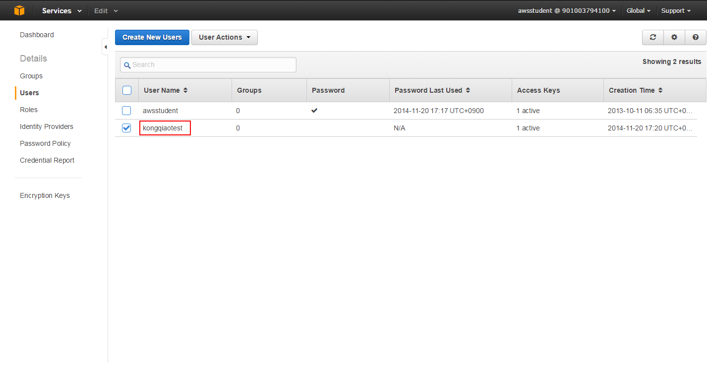 4.1要删除用户时,选择该用户,点击「User Actions」选择「Delete User」。删除该用户。
